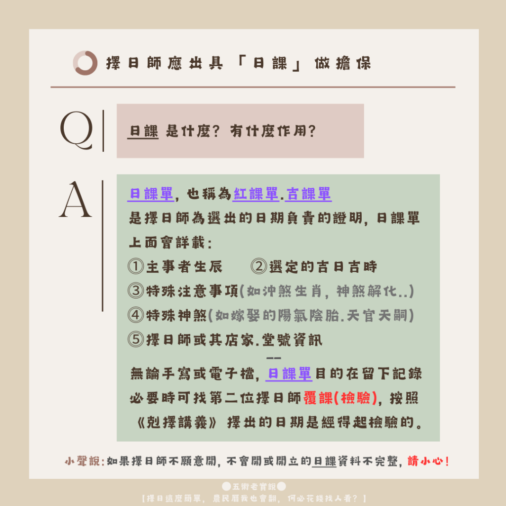 → 擇日師應出具「日課」做擔保。
